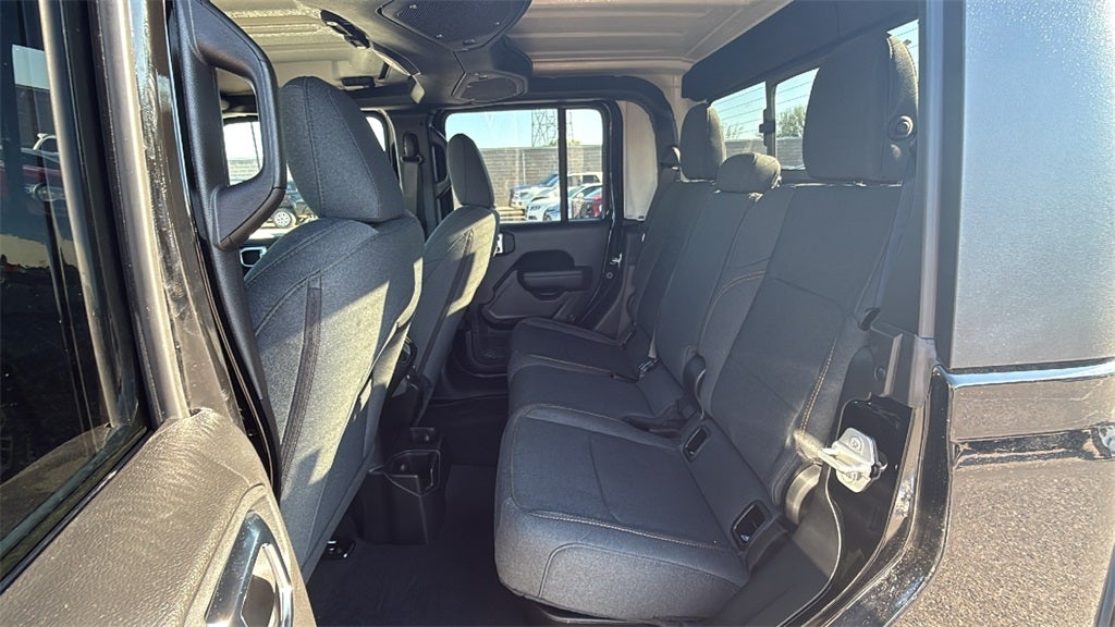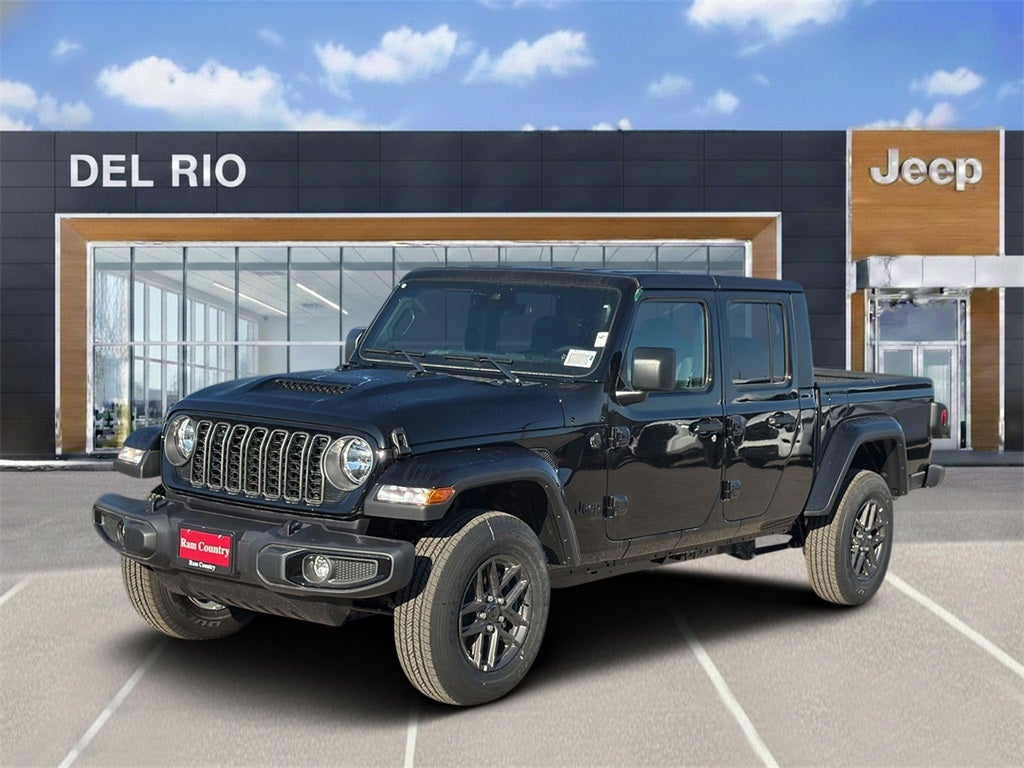 This 2025 Jeep Gladiator Sport S in Black Clearcoat comes with the following features: 3.6L V6 24V VVT 8-Speed Automatic 4WD Dark Sky Appearance Package (Body Color Fender Flares (2-Piece), Daytime Running Lamp System, Mold In Color Bumper w/Gloss Black, and Performance Hood), Quick Order Package 24S Sport S (Advanced Brake Assist, Automatic Headlamps, Deep Tint Sunscreen Windows, Enhanced Adaptive Cruise Control, Full Speed Forward Collision Warning Plus, Normal Duty Plus Suspension, Power Heated Mirrors, Premium Wrapped Steering Wheel, Security Alarm, Sun Visors w/Illuminated Vanity Mirrors, and Wheels: 17 x 7.5 Gray), AM/FM radio: SiriusXM, Low tire pressure warning, Occupant sensing airbag, Power windows, Radio data system, 110 MPH Vehicle Max Speed Calibration, 12.3 Touchscreen Display, 3.73 Rear Axle Ratio, 4-Wheel Disc Brakes, 4G LTE Wi-Fi Hot Spot, 8 Speakers, ABS brakes, Air Conditioning, Alexa Built-In, Apple CarPlay, Apple CarPlay/Android Auto, Black 3-Piece Hard Top, Brake assist, Cloth Low-Back Bucket Seats, Compass, Connectivity - US/Canada, Delay-off headlights, Driver door bin, Driver vanity mirror, Dual front impact airbags, Dual front side impact airbags, Electronic Stability Control, Freedom Panel Storage Bag, Front anti-roll bar, Front Bucket Seats, Front Center Armrest w/Storage, Front fog lights, Front License Plate Bracket, Front reading lights, Google Android Auto, Illuminated entry, Integrated roll-over protection, Manufacturer's Statement of Origin, MOPAR All-Weather Slush Mats, MOPAR Spray In Bedliner, Normal Duty Suspension, Outside temperature display, Overhead airbag, Panic alarm, ParkView Rear Back-Up Camera, Passenger door bin, Passenger vanity mirror, Power steering, Radio: Uconnect 5 w/12.3 Display, Rear anti-roll bar, Rear reading lights, Rear Sliding Window, Rear Window Defroster, Remote keyless entry, Speed control, Split folding rear seat, Steering wheel mounted audio controls, Tachometer, Telescoping steering wheel, Tilt steering wheel, Traction control, Trip computer, USB Host Flip, Variably intermittent wipers, Voltmeter, and Wheels: 17 x 7.5 Black Steel Styled. Price includes: $1000 - 2025 Southwest BC Bonus Cash . Exp. 03/02/2026 $2250 - 2025 National Retail Bonus Cash . Exp. 03/02/2026