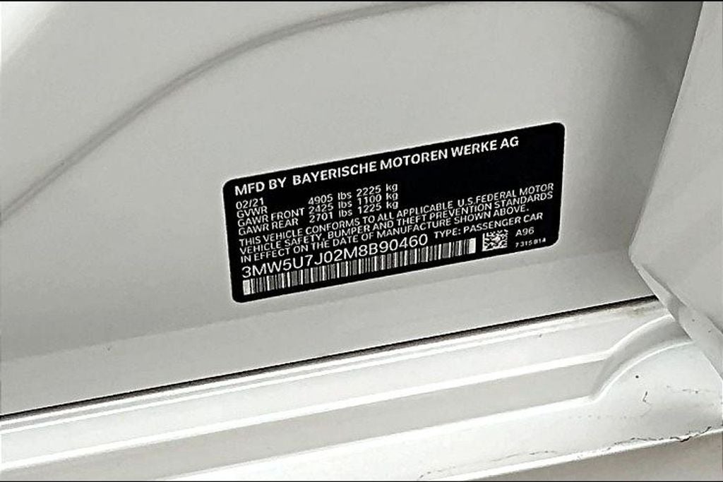 This 2021 BMW 3 Series M340i in Mineral White Metallic comes with the following features: 3.0L I6 8-Speed Automatic Sport RWD Connected Package Pro, Driving Assistance Package (Active Blind Spot Detection, Active Driving Assistant, Lane Departure Warning System, and Park Distance Control), Parking Assistance Package (Active Park Distance Control, Parking Assistant Plus, Rear-View Camera, and Surround View w/3D View), 10 Speakers, 4-Wheel Disc Brakes, ABS brakes, Air Conditioning, Alloy wheels, AM/FM radio: SiriusXM with 360L, Apple CarPlay & Android Auto Compatibility, Apple CarPlay Compatibility, Auto High-beam Headlights, Auto-dimming door mirrors, Auto-dimming Rear-View mirror, Automatic temperature control, BMW Assist eCall, BMW TeleServices, Brake assist, Bumpers: body-color, Compass, ConnectedDrive Services, Delay-off headlights, Driver door bin, Driver vanity mirror, Dual front impact airbags, Dual front side impact airbags, Electronic Stability Control, Emergency communication system: BMW Assist eCall, Exterior Parking Camera Rear, Four wheel independent suspension, Front anti-roll bar, Front Bucket Seats, Front Center Armrest, Front dual zone A/C, Front reading lights, Fully automatic headlights, Garage door transmitter, Hands-Free Bluetooth® & USB Audio Connection, Heated door mirrors, Heated Front Seats, Heated Steering Wheel, Hi-Fi Sound System, High Gloss Fine Wood Ash Grey-Brown Trim, Illuminated entry, Knee airbag, Leather Shift Knob, Leather steering wheel, Live Cockpit Pro w/Navi, Low tire pressure warning, Lumbar Support, Memory seat, Navigation System, Occupant sensing airbag, Outside temperature display, Overhead airbag, Panic alarm, Passenger door bin, Passenger vanity mirror, Power door mirrors, Power driver seat, Power Front Seats, Power moonroof, Power passenger seat, Power steering, Power windows, Radio Control US, Radio data system, Radio: AM/FM Audio System, Rain sensing wipers, Rear air conditioning, Rear anti-roll bar, Rear reading lights, Rear seat center armrest, Rear window defroster, Remote Engine Start, Remote keyless entry, Security system, SensaTec Upholstery, SiriusXM w/360L, Speed control, Speed-sensing steering, Speed-Sensitive Wipers, Split folding rear seat, Spoiler, Sport Seats, Sport steering wheel, Steering wheel mounted audio controls, Tachometer, Telescoping steering wheel, Tilt steering wheel, Traction control, Trip computer, Turn signal indicator mirrors, Variably intermittent wipers, Wheels: 18 x 7.5 Fr & 18 x 8.5 Rr (Style 790M), and Wheels: 19 x 8.0 Fr & 19 x 8.5 Rr M Dble-Spoke.